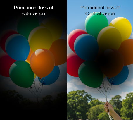 Permanent loss of side and central vision
