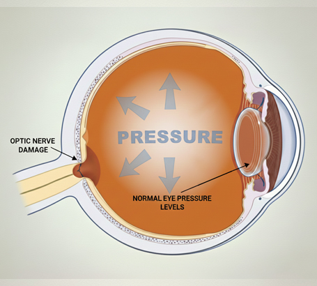 Glaucoma typically occurs when the fluid in the eye (aqueous humor) does not drain properly. This fluid buildup increases internal eye pressure, which eventually damages the optic nerve fibers. However, glaucoma can also occur in individuals with “normal” eye pressure, a condition known as Normal-Tension Glaucoma.